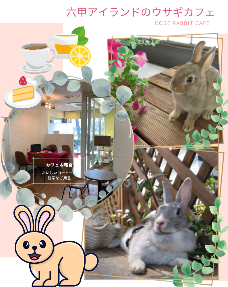 うさぎと暮らして22年のオーナー夫妻が神戸六甲アイランドにウサギと一緒にゆったり過ごせて、うさぎとふれあい癒されるカフェをオープンいたしました。