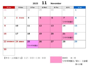 11月の営業カレンダー