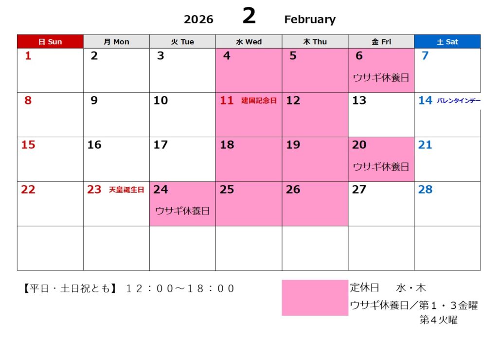 12月の営業カレンダーです 🐇